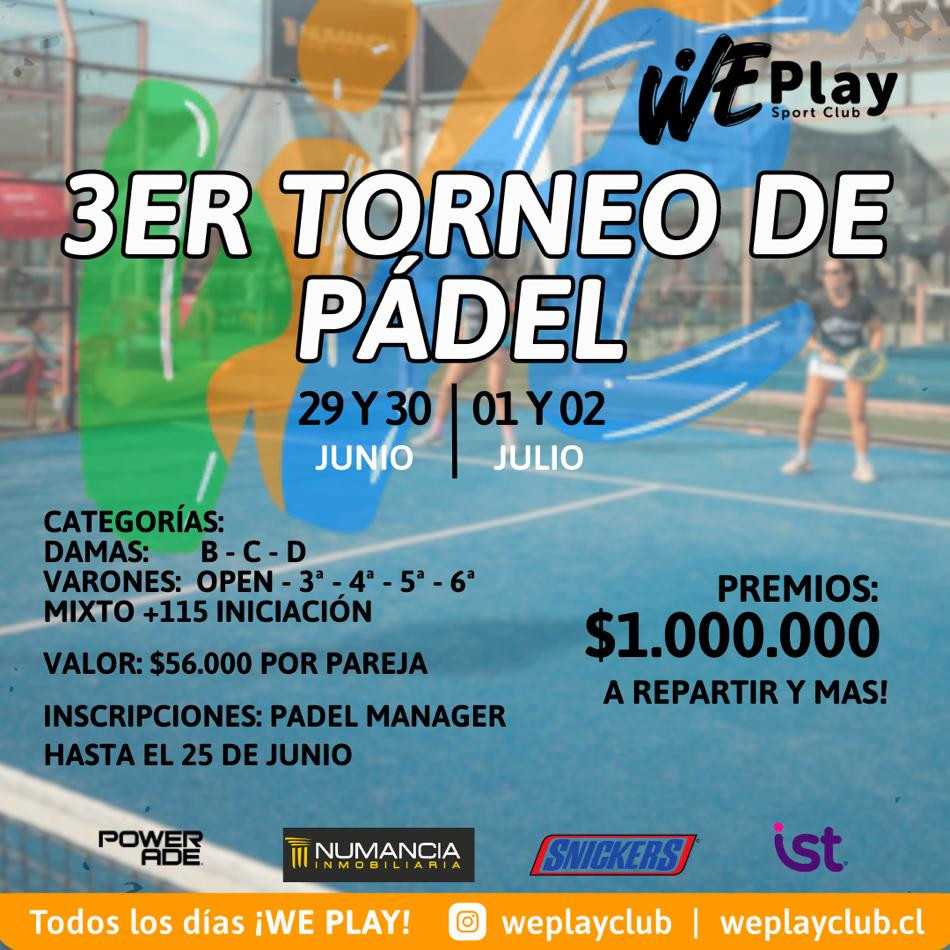 3er TORNEO DE PÁDEL WE PLAY SPORT CLUB